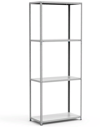 Все современные металлические стеллажи этой категории оснащаются перфорированными стойками с легко переставляемыми полками. Шаг регулировки обычно 25 мм, что позволяет размещать полки под нужную высоту товаров — например, для папок, контейнеров, небольших коробок.
